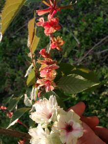 橙の穂の下が標準御衣黄 黄色と言う桜の写真は左が標準御衣黄